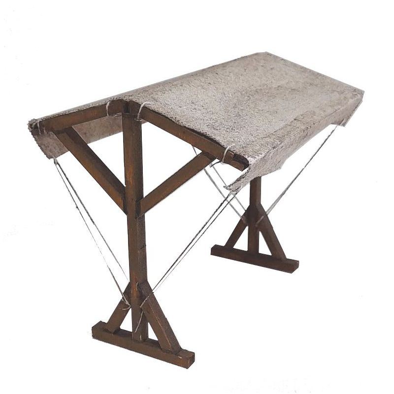 die Marktgestelle sind aus MDF und die Planen aus Baumwolle und werden unbemalt geliefert und müssen zusammengebaut werden.