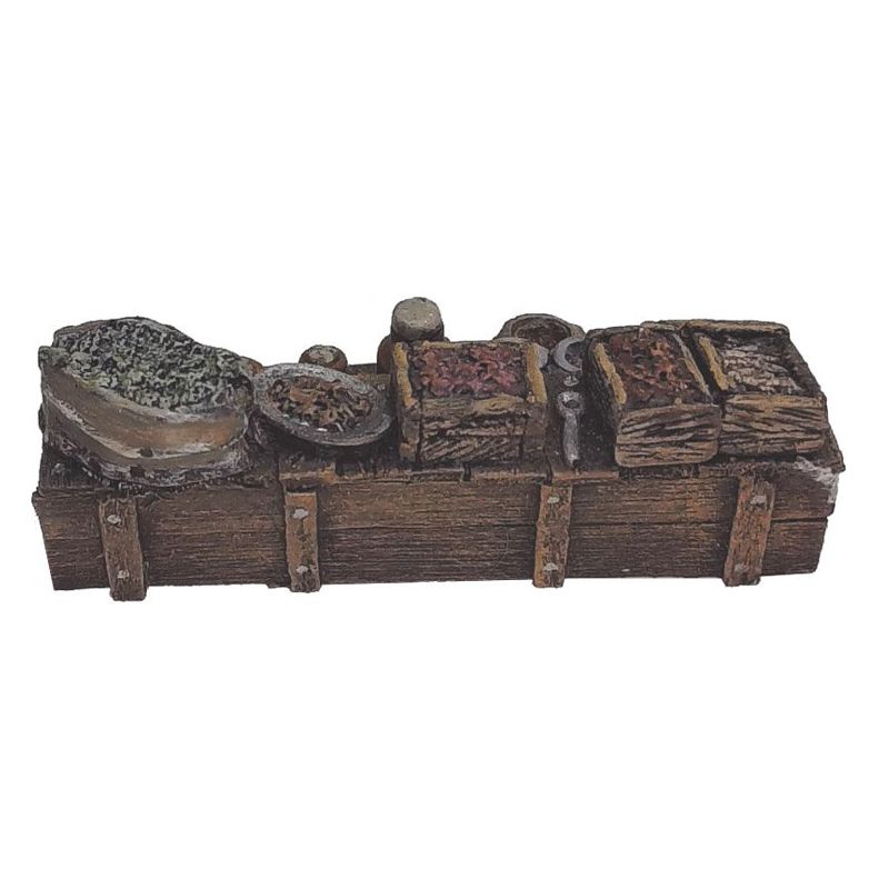Der Markttisch ist aus hochwertigem Resin gegossen und wird unbemalt geliefert