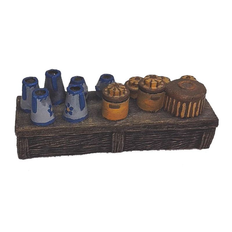 Der Markttisch ist aus hochwertigem Resin gegossen und wird unbemalt geliefert
